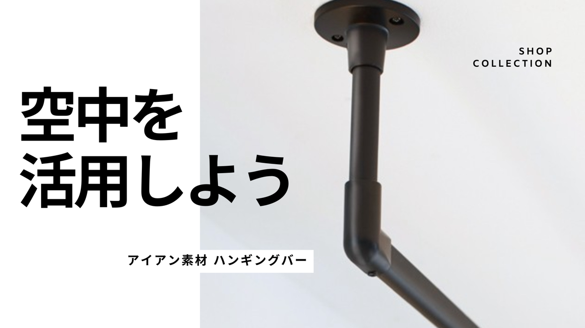 『見せる収納』が絵になるアイアン素材のハンギングバー。